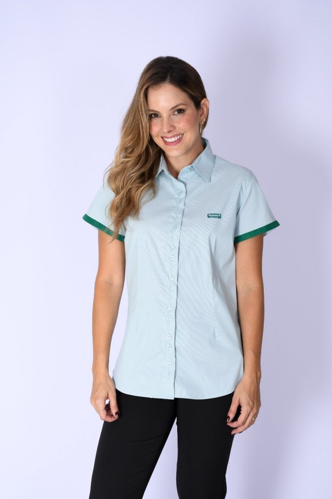 Confeccionada em tecido leve e confortável, possui modelagem acinturada, gola estruturada e fechamento frontal por botões. Ideal para ambientes corporativos e atendimento ao público.